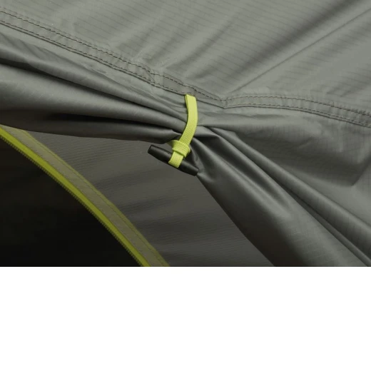 Dotée d’une structure autoportante avec armature intégrée, elle possède des clips rapides qui permettent un assemblage rapide et intuitif, très pratique par mauvais temps. Des sangles réglables avec œillets métalliques et sangles Velcro® permettent de fixer le double toit à l’armature, tandis que des tendeurs assurent une mise en tension simple et sûre.