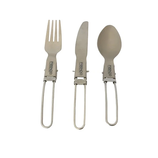 Le set de couvert Frendo est composé d’une fourchette, d’un couteau et d’une cuillère avec le manche en acier inoxydable et l’outil en titane. Il est vendu dans une housse, ainsi, rangé il ne prend pas de place et pourra vous suivre en trek, randonnée ou même en voyage.