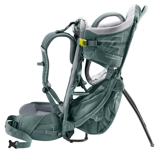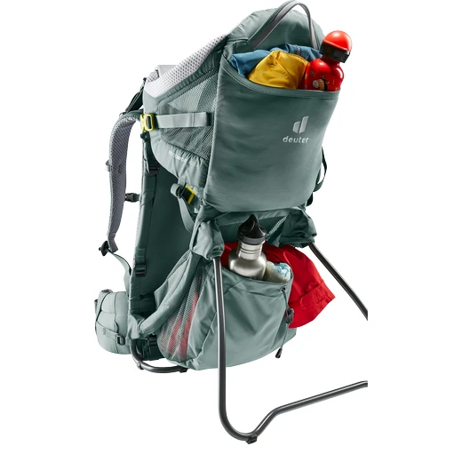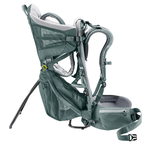 Côté accessoirisation, ce porte-bébé Deuter possède une poche zippée sur les hanches, une grande poche élastique avant, et une poche élastique aérée en filet sous le siège. Très compact une fois replié et facilement transportable grâce à ses deux poignées, le Kid Comfort Active deviendra rapidement le compagnon idéal de vos randonnées en famille.