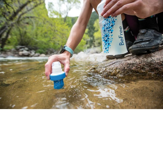 La flasque souple BeFree ne prend que très peu de place quand elle est vide, vous pouvez donc l’emmener partout avec vous et la remplir pendant votre sortie en montagne.