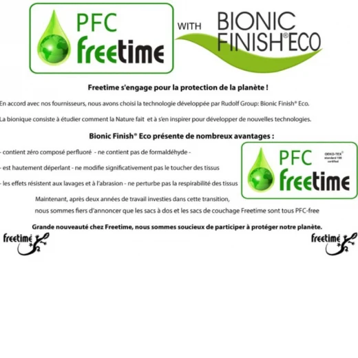 Ce modèle junior de Freetime utilise un traitement imperméabilisant 100% PFC Free, réduisant son impact sur l’environnement et votre santé.