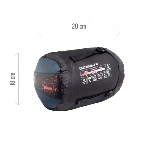 Idéal pour dormir en refuge ou sous la tente, le Light Down est un écrin de chaleur livré avec un sac de compression de 5 litres (20 x 18cm).