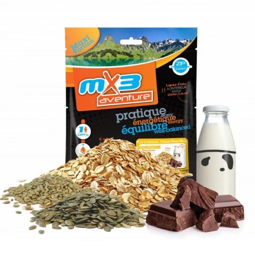 Le Porridge chocolat lyophilisé de MX3 est le petit déjeuner de l’effort ou l’encas idéal pour faire le plein d’énergie rapidement. Une sélection de bonnes céréales accompagnées de Super aliments. Cette recette se réhydrate rapidement en 5mn, de préférence à chaud pour un chocolat plus onctueux.