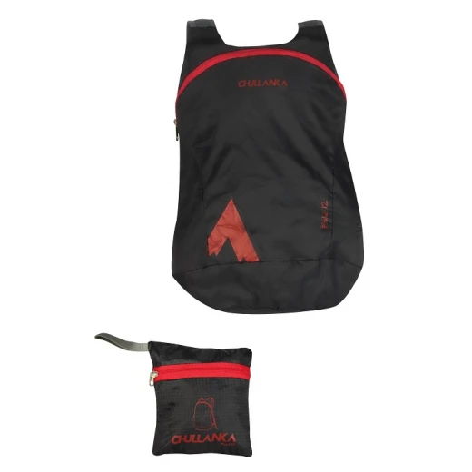 Le FOLD 12 est un sac à dos pliant d’un volume de 12 litres. Ultra-compact une fois replié (l 10 x H 11 x 5 cm) il s’emmène partout et ne pèse que 86 grammes. Bretelles en mesh aéré et composition en nylon en font un sac solide et confortable. Son induction PU le rend résistant à la pluie.