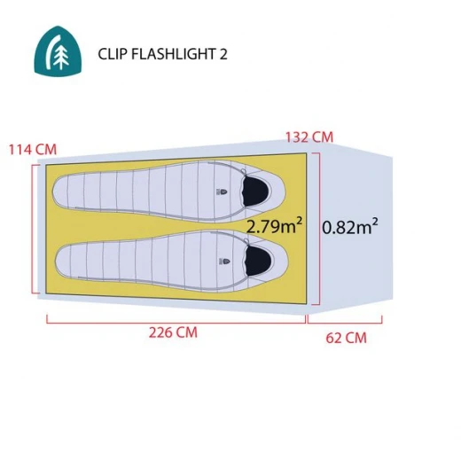 Accueillante et fonctionnelle, la tente Clip Flashlight 2 profite dâune abside afin dâentreposer votre matĂ©riel de camping et votre sac Ă dos de trekking et de 2 poches filets en intĂ©rieur pour y ranger une carte IGN, une lampe frontale ou des affaires de toilette. En complĂ©ment, l’ouverture du double toit se transforme en un large store pour vous protĂ©ger des intempĂ©ries.