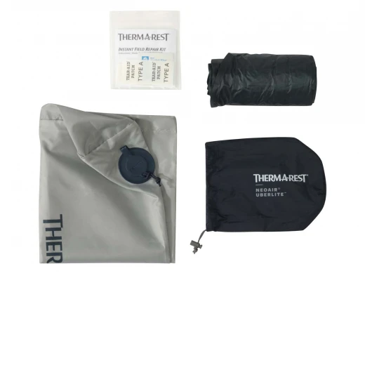 Issu de la collection Fast and Light, le matelas gonflable haut de gamme NéoAir UberLite de Therm-a-Rest est livré avec un sac-pompe Pump Sack pour économiser votre souffle et un kit de réparation pour faire face aux accidents.