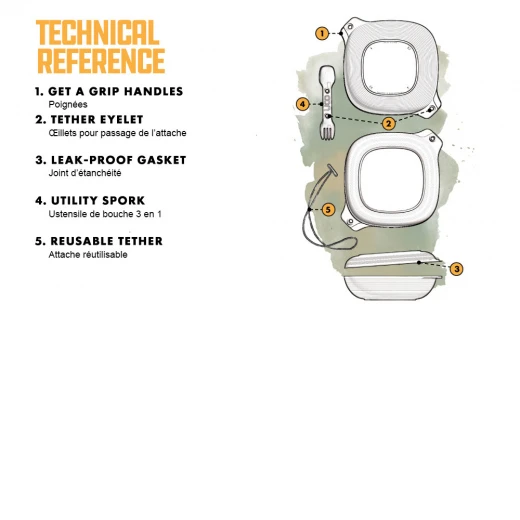 Indispensable pour déguster votre repas durant vos aventures en plein air, la Spork est un ustensile de bouche 3 en 1. Le godet de la cuillère est spécialement conçu pour gratter votre assiette ou votre bol UCO Gear tandis que la fourchette vous permet de couper et piquer vos aliments. De même, le bol est pourvu d’un couvercle hermétique pour emmener des fruits juteux ou des salades sans risque de fuite grâce à son double joint d’étanchéité et à son attache supplémentaire. De plus, les poignées ergonomiques améliorent la prise en main.